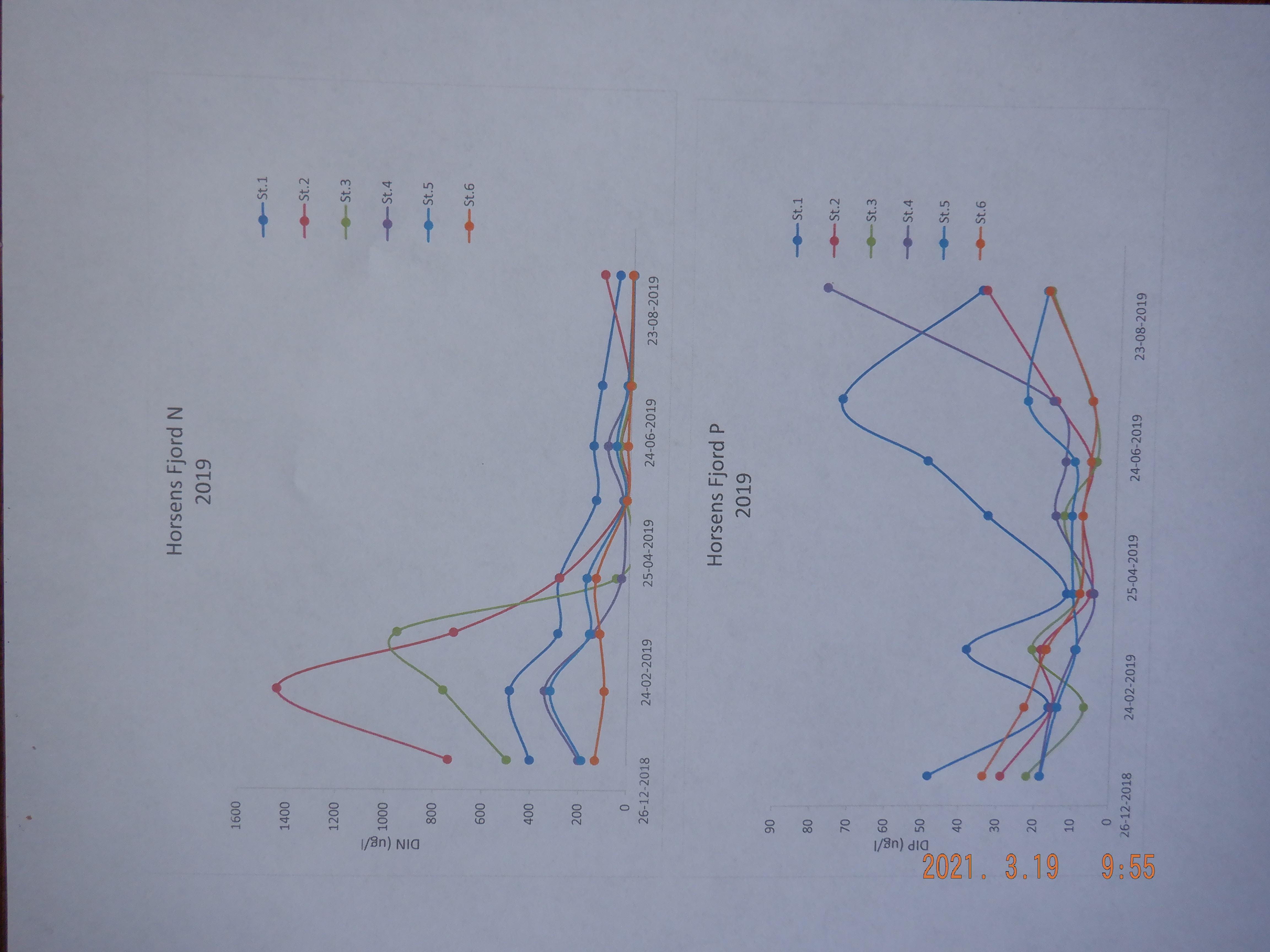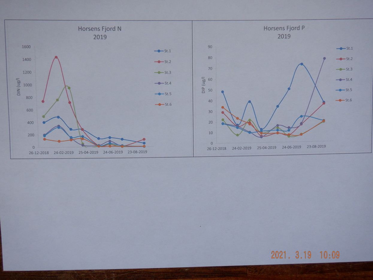 - kvælstofbelastningen er størst først i vinter og forår og faldende udad i fjorden